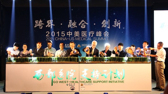 金数据人寿与美国约翰霍普金斯医学国际部在京联合举办第二届中美医疗峰会,以“跨界·融合·创新”为主题,探讨保险、医疗、养老产业之间的跨界融合与创新。秉承“让每个人都有机会平等享受高品质医疗”理念,金数据人寿与国内外一流医疗组织共同启动“西部医院支持计划”,着力缓解西部医疗资源匮乏问题。